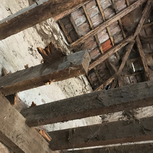 Last week the old and mainly rotting timbers were brought down in the 'tower' section of the barn so we can now really see the beautiful vaulted space we will have for a master bedroom. This spot has already been adopted as a desirable place to kip apparently. While pulling down a beam, two little creatures plummeted into the water below. "BATS...!!" shouted Steve, and promptly rang our ecologist who blue-lighted over to the rescue. She confirmed they were 'only' pipistrelles so, thankfully, covered by our licence. The little furry critters spent last weekend on a luxury B&B mini break at her house, before being ready to return to our waiting shiny new bat-box home. We breathed a sigh of relief that a) they were pipistrelles and b) the Bat B&B rate was covered within our existing ecology bat charges - Phew! Just now hoping there are none hiding under any of the roof tiles...